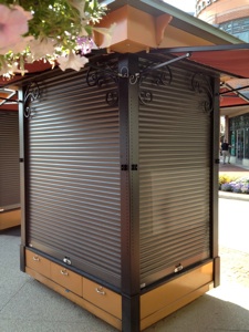 The architects choice, AC Rolling Shutters can be found securing counters & kiosks from coast to coast. Be it pharmacy, cafeteria, vending, or ticket windows, AC Shutters are your best investment in loss prevention. Mobile or stationary kiosks, high value merchandise displays, and outdoor patio bars, we can customize any solution to protect your investment.